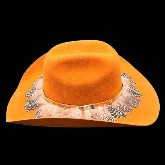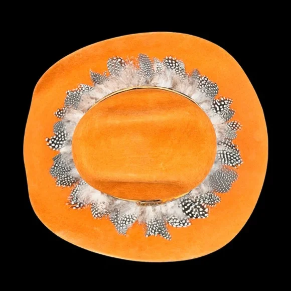 ADELINAOriginal price was: $280.00.Current price is: $245.00.100 % Bolivian Wool Handcrafted in MexicoPinched CrownFirm/ Stiff Body Tall crown heightHardware: State of Gracie Gold Metal Side BarHatband: Feathers train + Velvet hat band in copper color Lining: Sunset-inspired print charmeuse silk lining This product is final sale + not eligible for returns or exchanges.GREAT SUN PROTECTIONSTYLE #102WWW.STATEOFGRACIE.COM